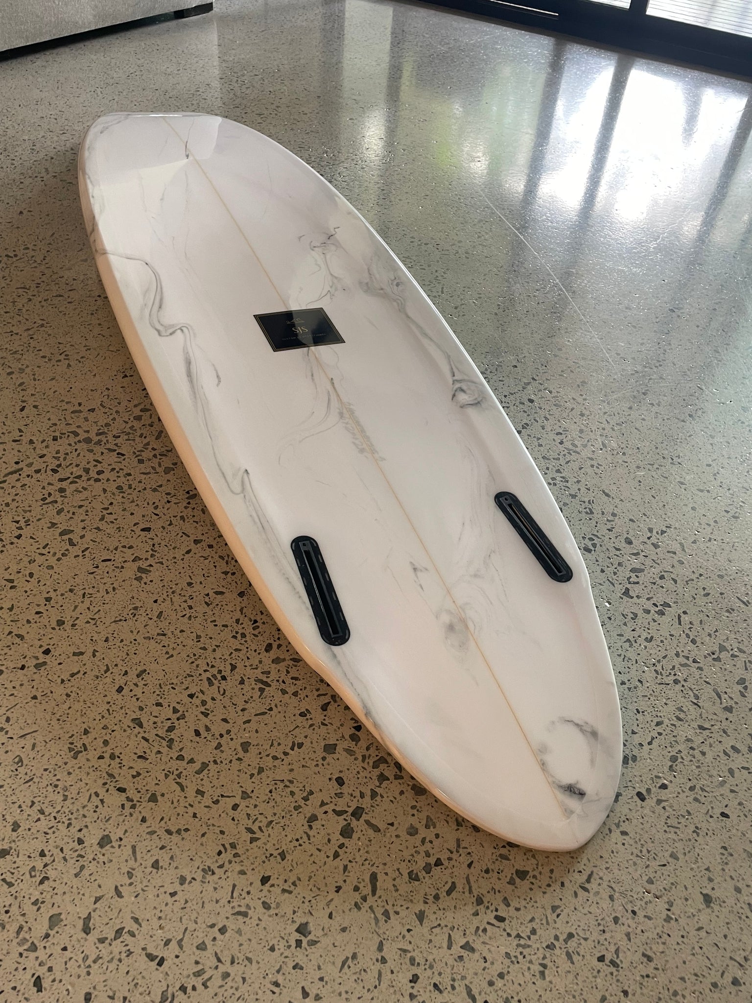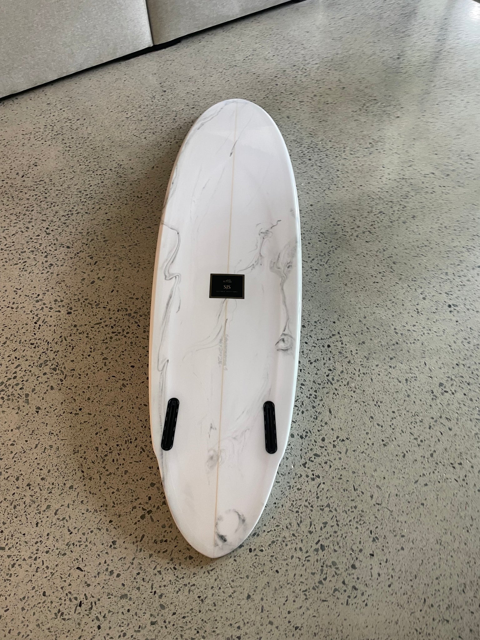 this one Has a stunning "marble" finis , polished on the bottom side and rails , satin finish on the deck ,